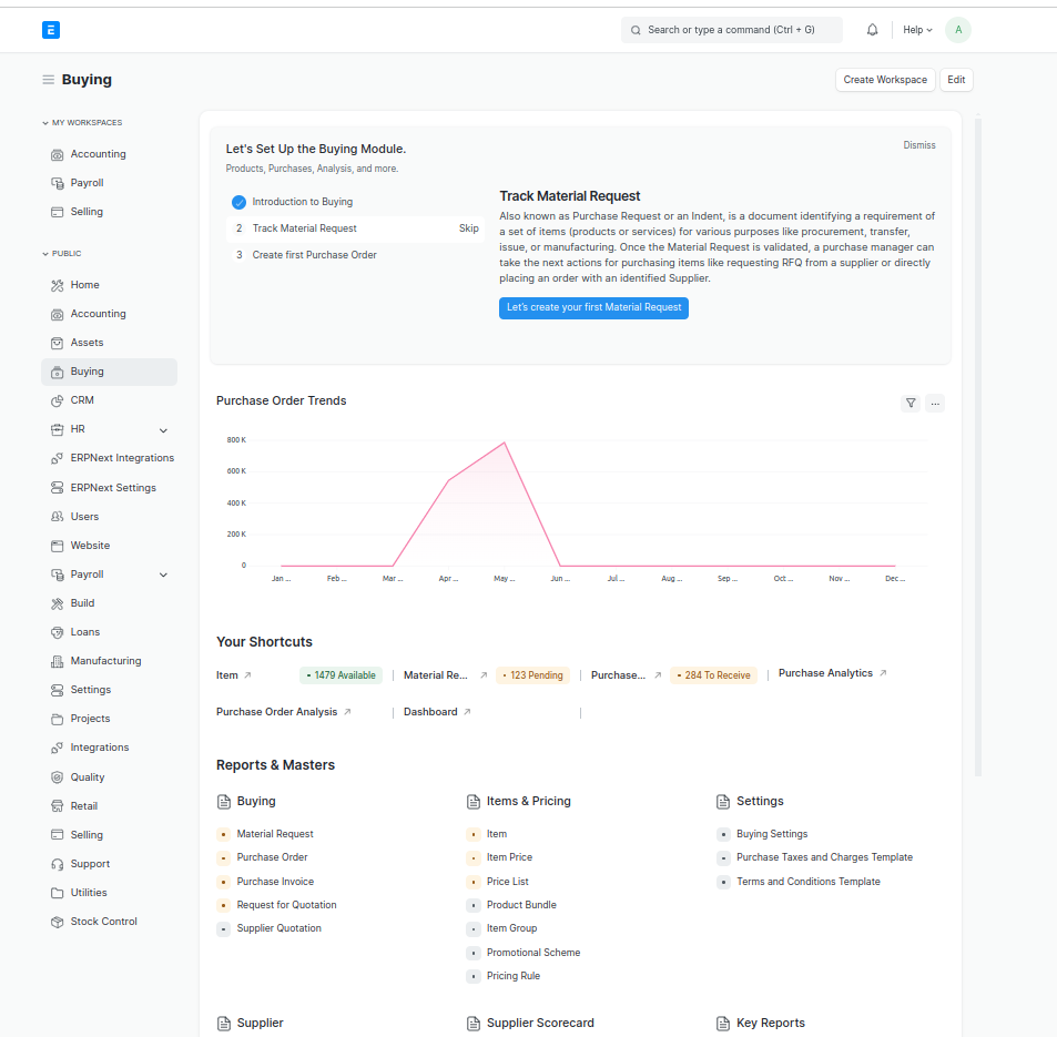 ERPNext's Purchasing module brings control to your supply chain. Generate requests for quotes, automate purchase orders, and track deliveries with ease. Receive items efficiently, manage bills, and gain real-time inventory visibility. Free 1-month trial - streamline your purchasing process, save time, and boost profitability!